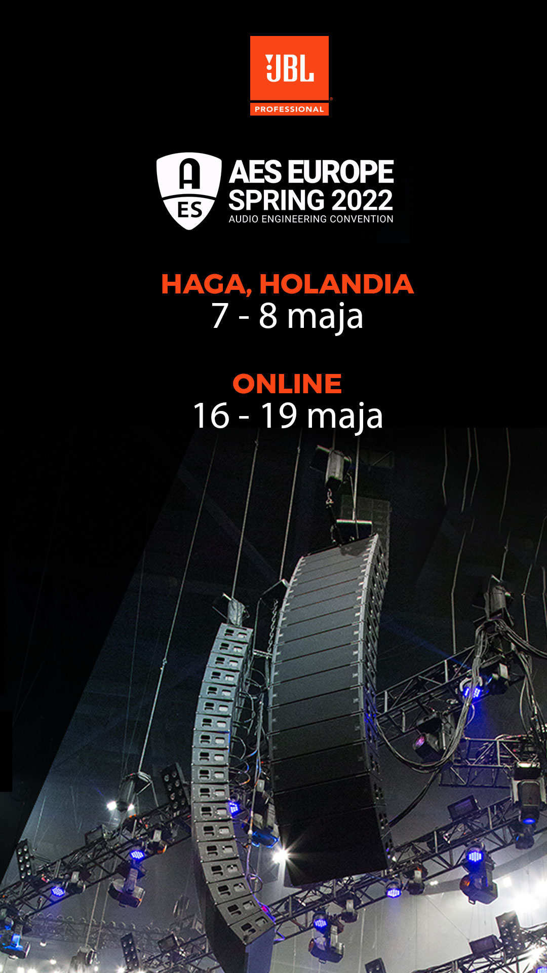 Cieszymy się, że w tym roku ponownie JBL Professional będzie uczestniczyło w AES Audio Engineering Convention 2022, która się odbędzie 7 i 8 maja w Hadze oraz od 16 do 19 maja online.