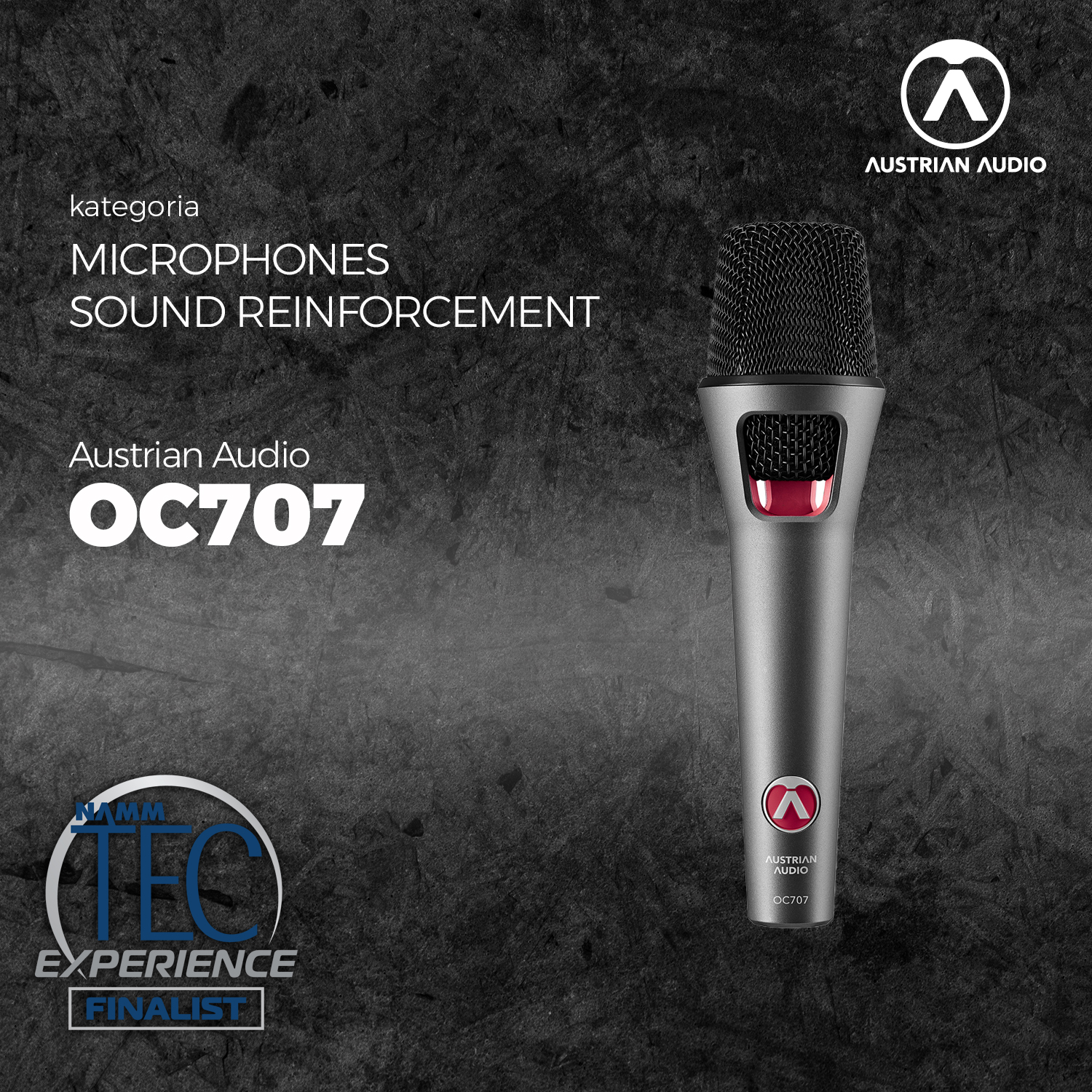 OC707 to wytrzymały mikrofon wokalny z odlewanym korpusem i technologią pojemnościową dla doskonałego dźwięku na scenie. Opracowany i skonstruowany w Wiedniu, OC707 zawiera małomembranową kapsułę pojemnościową z charakterystyką częstotliwościową zoptymalizowaną dla ludzkiego głosu. Kapsuła jest wykonywana ręcznie w zakładach Austrian Audio w Wiedniu.
