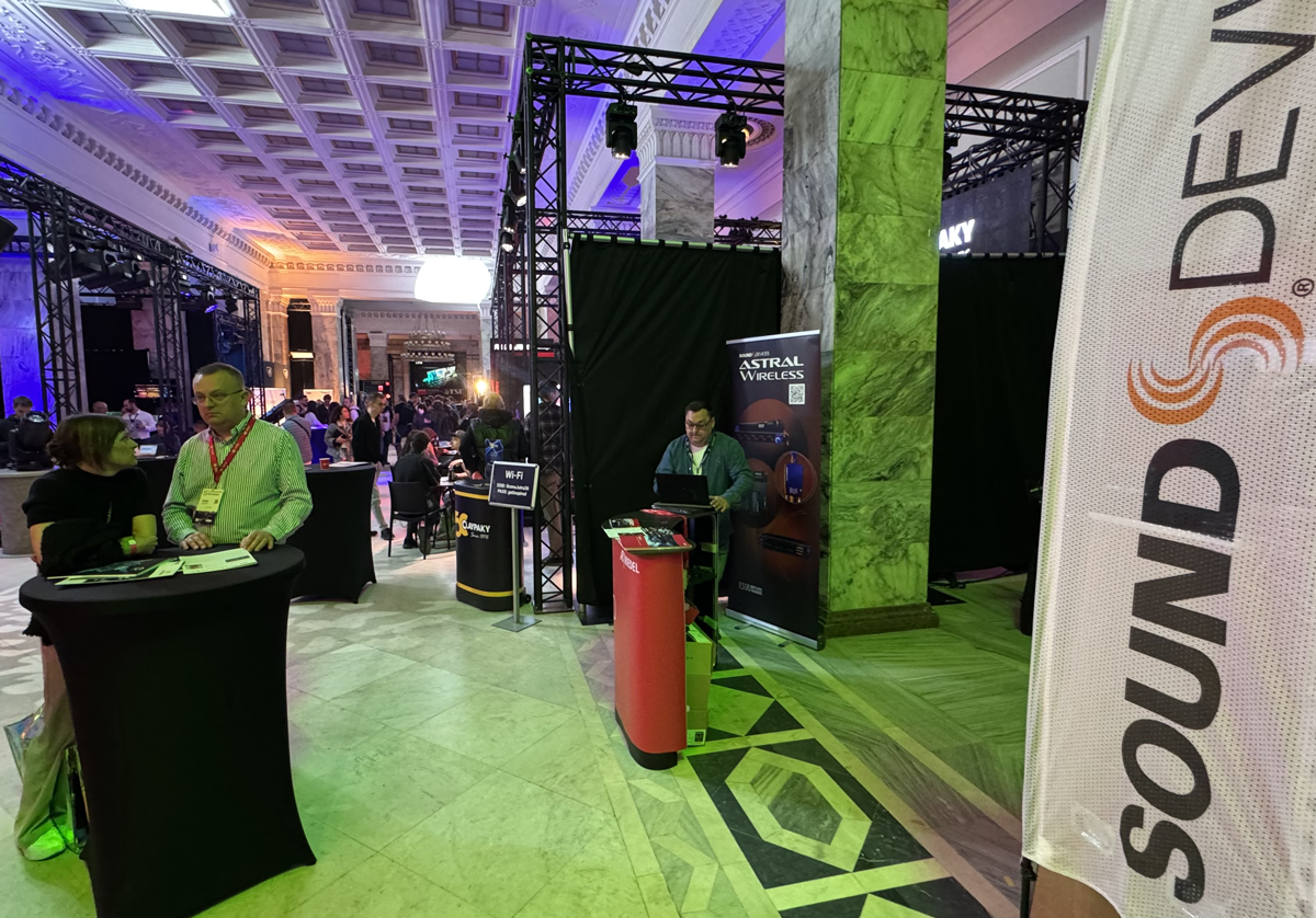 W tym roku skupiliśmy się na integracji i mobilności – czyli tematach, które coraz mocniej pojawiają się w codziennej pracy realizatorów. Na stoisku można było zobaczyć rozwiązania Stage Systems, które pomagają lepiej ogarniać to, co dzieje się na scenie. Dużym zainteresowaniem cieszyły się też systemy Sound Devices Astral Wireless – pokazywaliśmy, jak stabilna transmisja RF przekłada się na spokojniejszą i bardziej przewidywalną realizację, niezależnie od skali projektu.