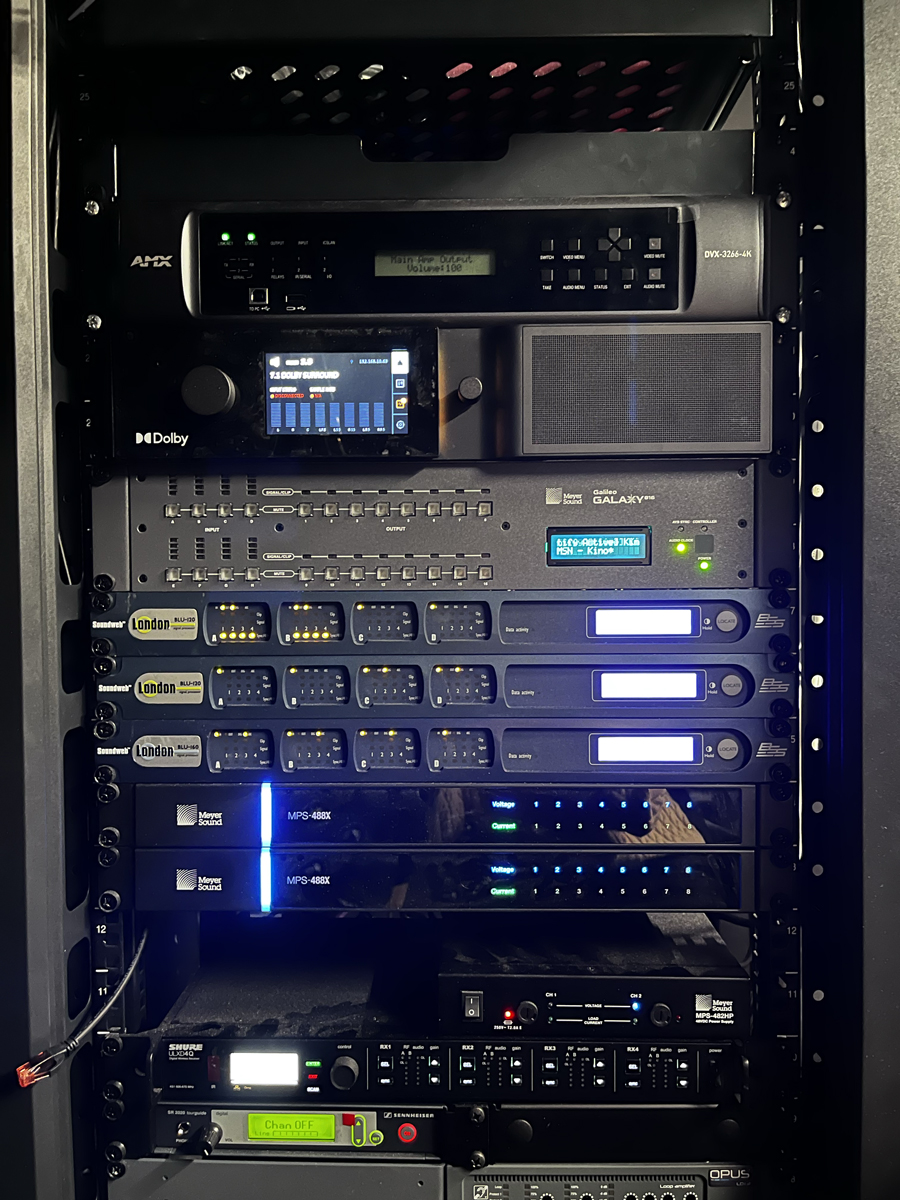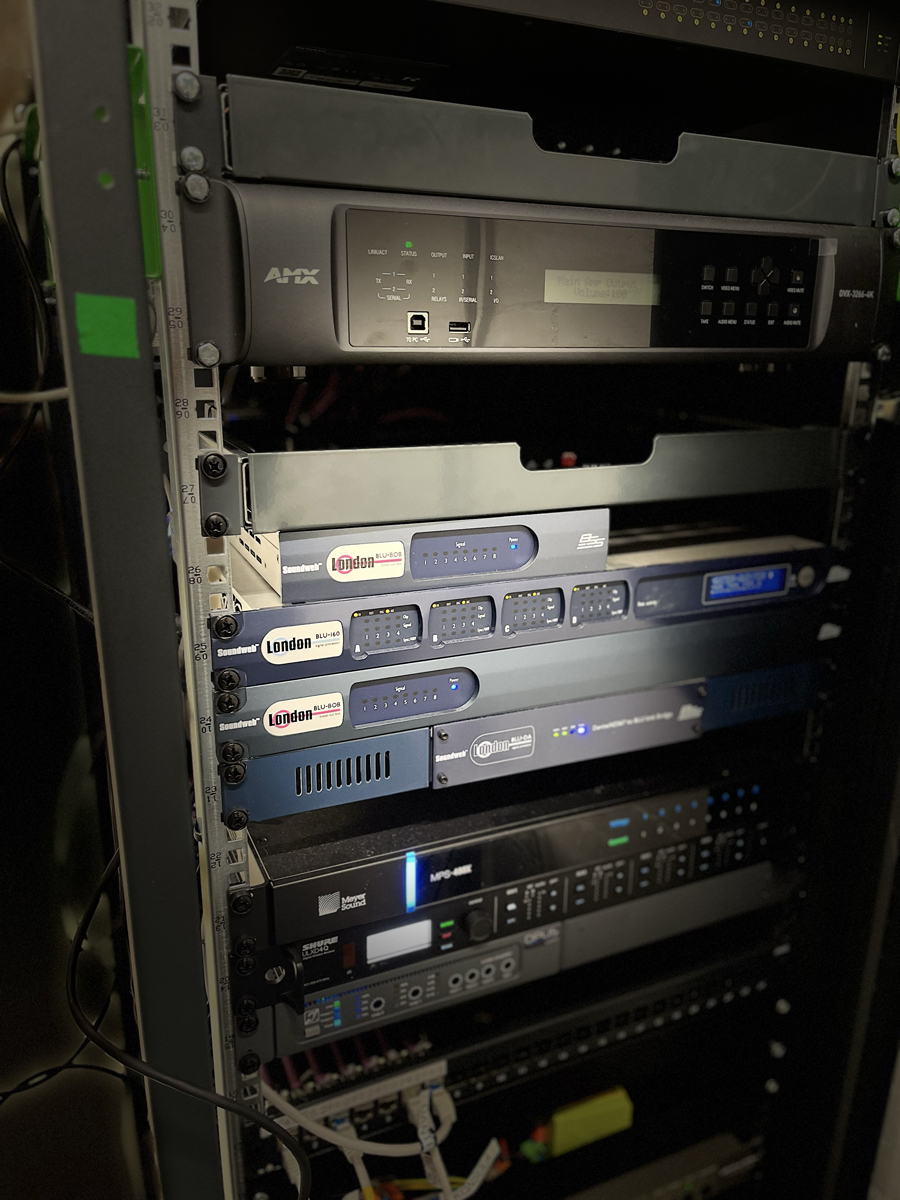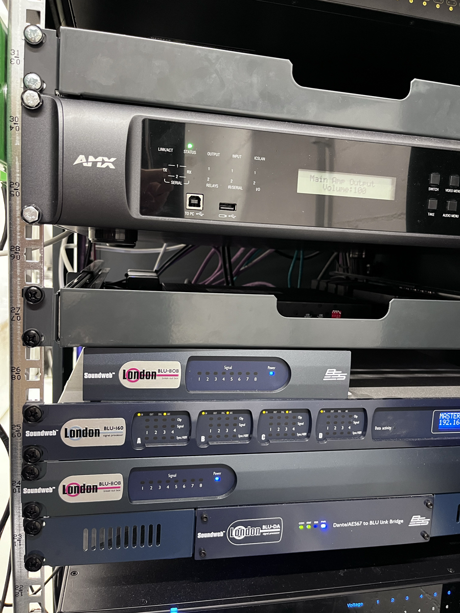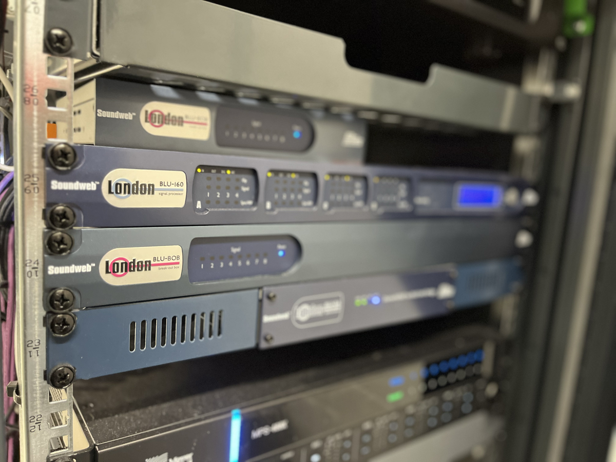 W instalacji zastosowano procesory sygnałowe BSS BLU 100 (2szt.), BSS BLU 120 (2szt.), BSS BLU 160 (2szt.), do tego karty rozszerzeń BSS BLUAEC-IN (6 szt.), BSS BLUCARD-IN (3 szt.) oraz BSS BLUCARD-OUT (1 szt.) i BSS BLUDIGITAL-IN (4 szt.) a także konwertery BSS BLU-DAN i BSS BLU-BOB2.