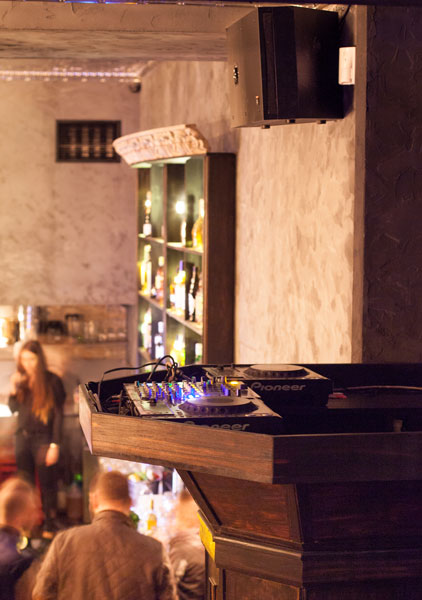 Pomieszczenie z głównym barem i DJ'ka wyposażone zostały w 4 wysokiej jakości kolumny głośnikowe JBL AC15 oraz dwa kompaktowe subwoofery JBL SB2.
