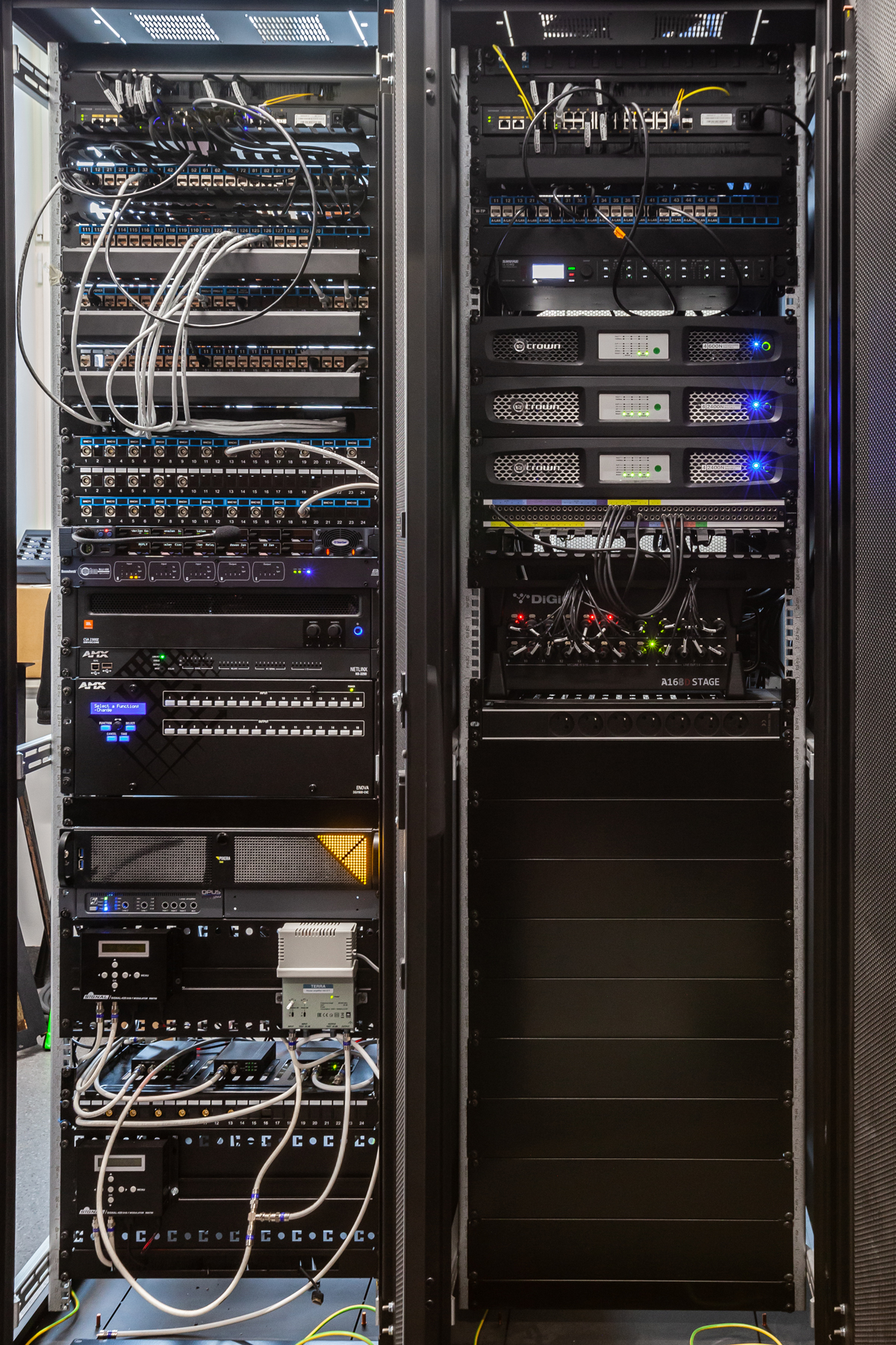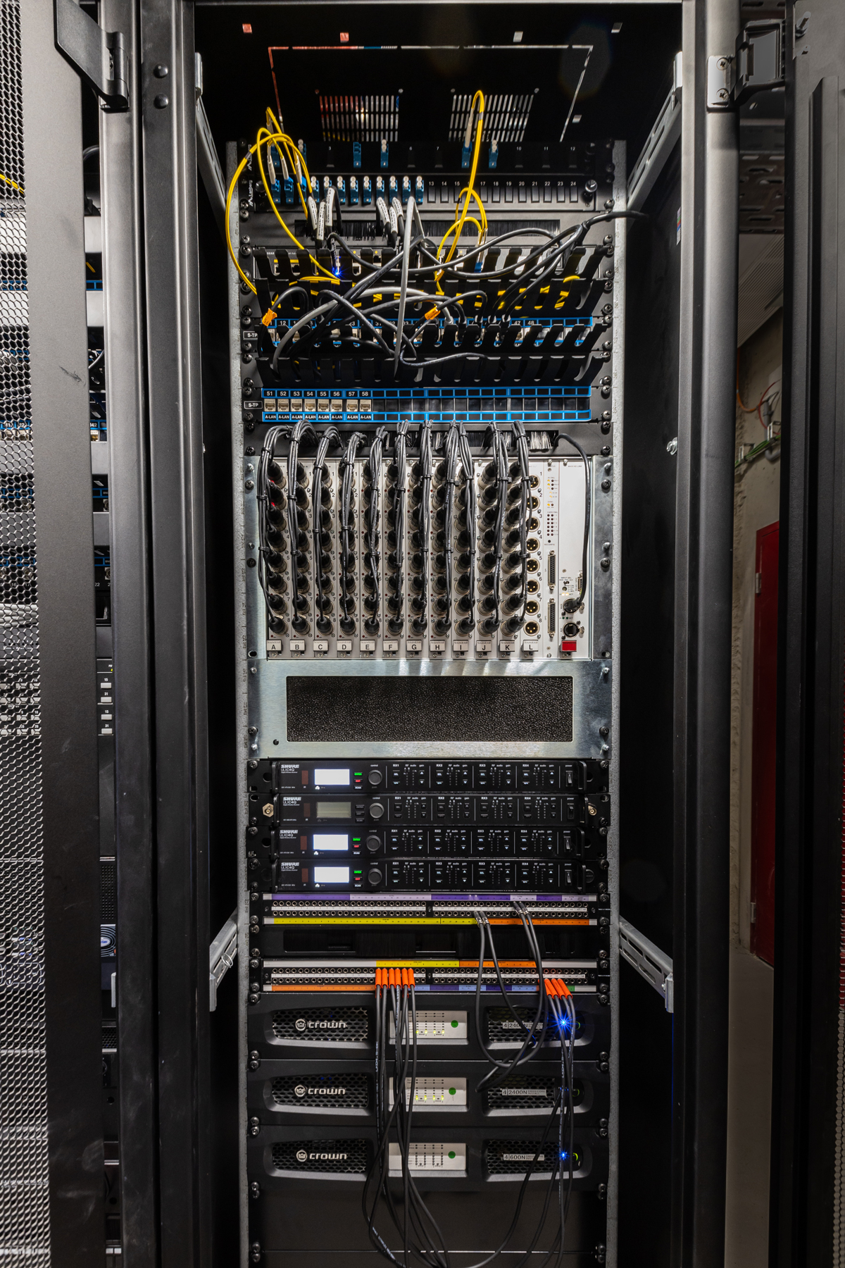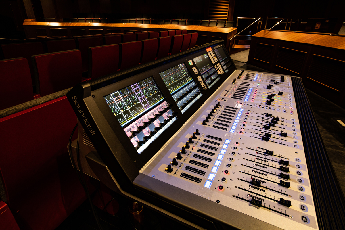 W sali znajdują się też dwie cyfrowe konsolety Soudcraft Vi5000 wraz z 2 szt. 64-kanałowymi stageboksami Vi STB 64/32. Dystrybucja sygnałów odbywa się za pośrednictwem sieci Dante.
